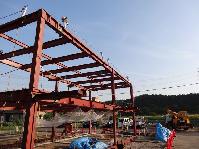 今日は志摩の家の建方。梅雨入りしていないのか、梅雨明けしたのか、今日もいい天気で暑い一日でした。鉄骨屋さんが下呂なので、帰る時間を見越してか、作業は余力を残して16時30分に終了。
