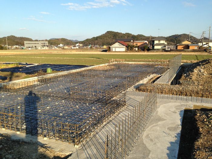 自分の影でサイズ感がよく分かりませんが、41坪の平屋は基礎カイデーです。