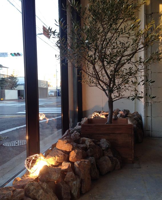 名古屋の美容院の工事も最終の外構工事です。店内なので内構工事か。ごろごろと大きめの石を積んで、現場用の灯光器を仕込んでいます。自分で選んできたオリーブもイメージ通りに決まりました。オープンは11/16です。