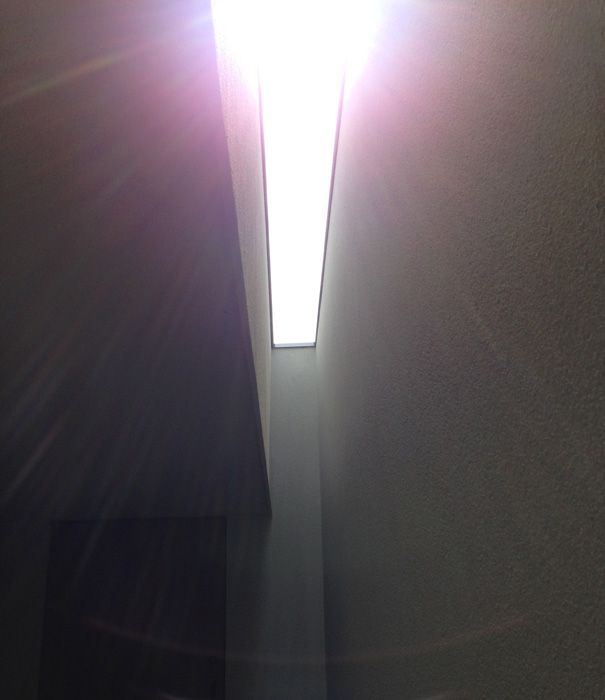 日野の家の一年点検に行ってきました。特に大きな不具合はなく、安心しました。ポーチのトップライトにはガラスが入っていないので、光も雨もそのまま入ってきます。一年を通して困った事はないとの事で、これも安心しました。ふとのぞくと、太陽がちょうど真上に。少し暗めのポーチで、何のフィルターも介さない生の光は強烈でした。