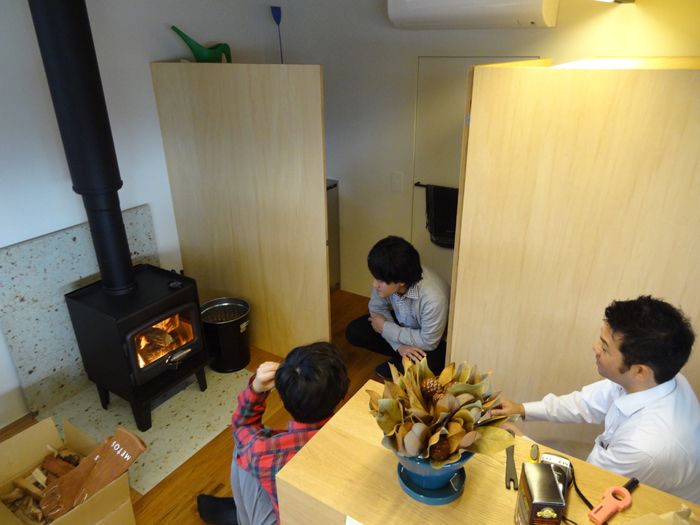 事務所の薪ストーブの火入れ式を行いました。これまで何軒かの住宅に採用してきましたが、実際に自分がユーザーになる事で、説得力が格段に違ってきます。実際に興味を持ってみえるクライアントも多くて、流行を通り越して、もう定着しつつありますね。まだ窓を開けないと暑いくらいで、暖房能力もかなり高いです。寒くなるのが待ち遠しくなるアイテムだなんて素敵です。