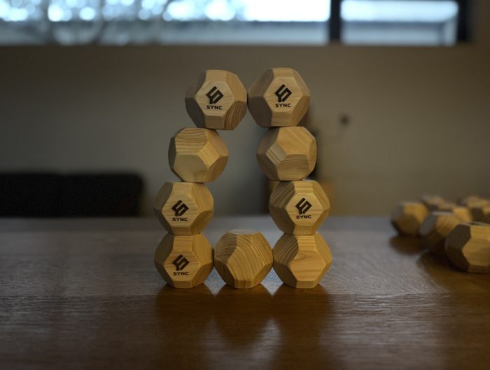 大阪の教会を施工していただいている花岡工務店さんが製作販売されている、OHAKOという積み木をSYNCロゴ入りで製作してもらいました!知育玩具という事で、早朝にミャクミャクをつくりました。作例にないので、世界初を成し遂げたのではないかとw