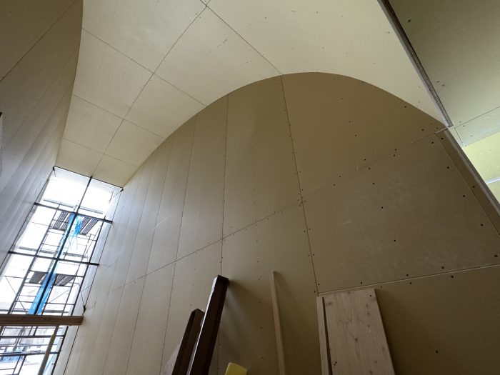 エントランスの吹抜は、フリーハンドで描いたアールの天井としました。北側からの光を柔らかく受け止めます。